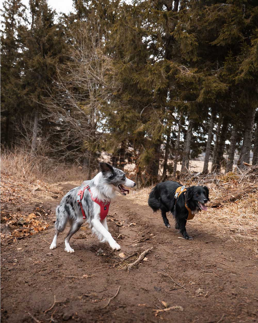 For this hike, we used the Weekend Warrior II eco dog harnesses. They’re sturdy, breathable, and perfectly suited for this kind of outing. The back clip and snug fit give our girls total freedom of movement—even at full sprint—while keeping them safe and comfortable.