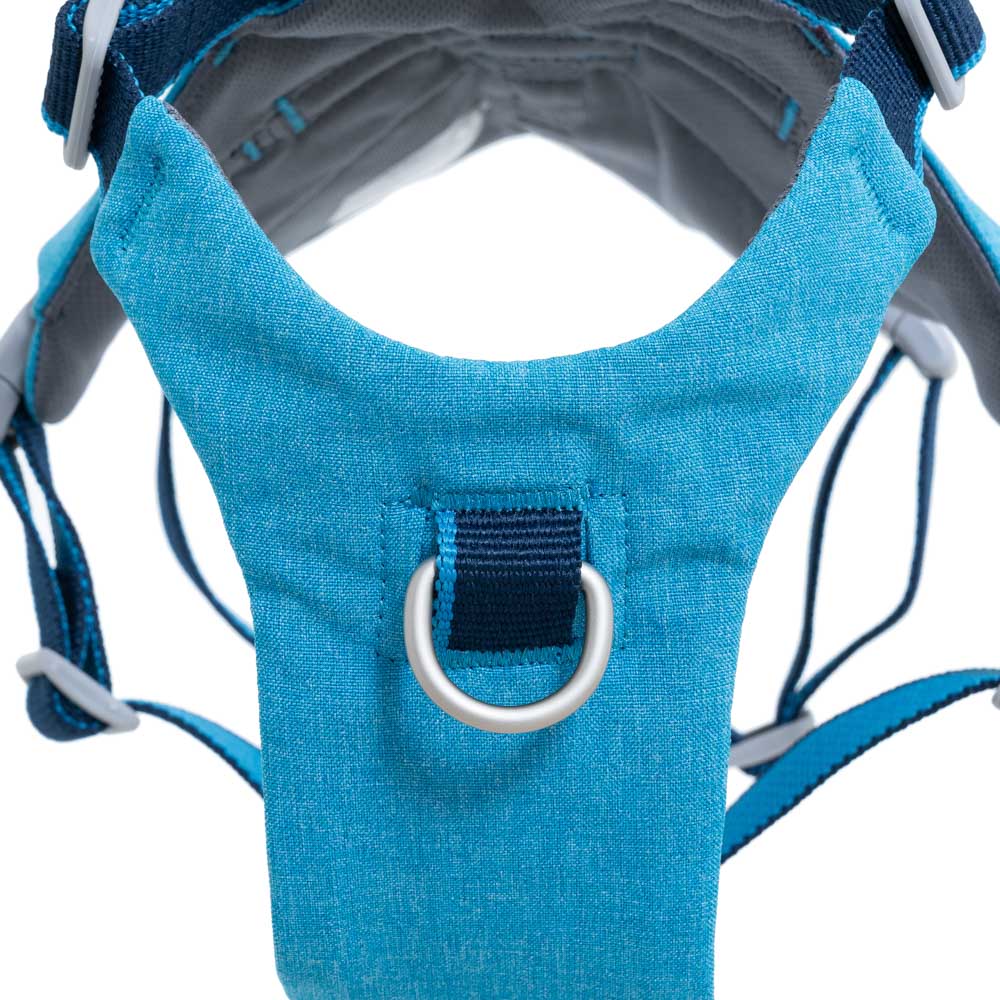 This harness style is sometimes called an escape proof or a three-strap harness thanks to its third attachment point—a distinct difference from standard harnesses. Thanks to this unique design, the harness provides a snug, slip-free fit for dogs of all sizes (even those with narrow waists or deep chests).
