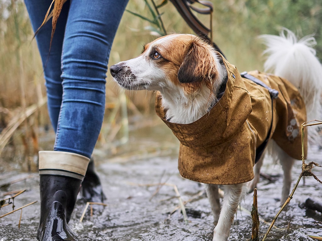 It's a good idea to pack a raincoat also for your furry best friend. If a summer shower hits your trail, it won't stop you from going. The raincoat fits into a small space and protects your dog not only from getting wet, but also from wind. When your dog stays dry, they won't get cold either. Especially during a break, their muscles cool down quickly if the coat is drenched and the wind blows in.