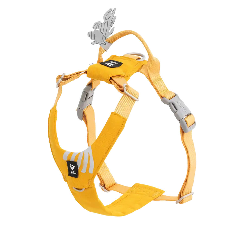 The harness features new, durable Duraflex buckles. The outer fabric is robust, bluesign® certified, and easy to clean. Durable recycled materials ensure long-lasting wear, and a detachable reflector boosts visibility in low light. The Seeker Harness is available in fun, vibrant colors, with a size range tailored specifically for small and medium dogs. For larger dogs, check out the Rover harness.