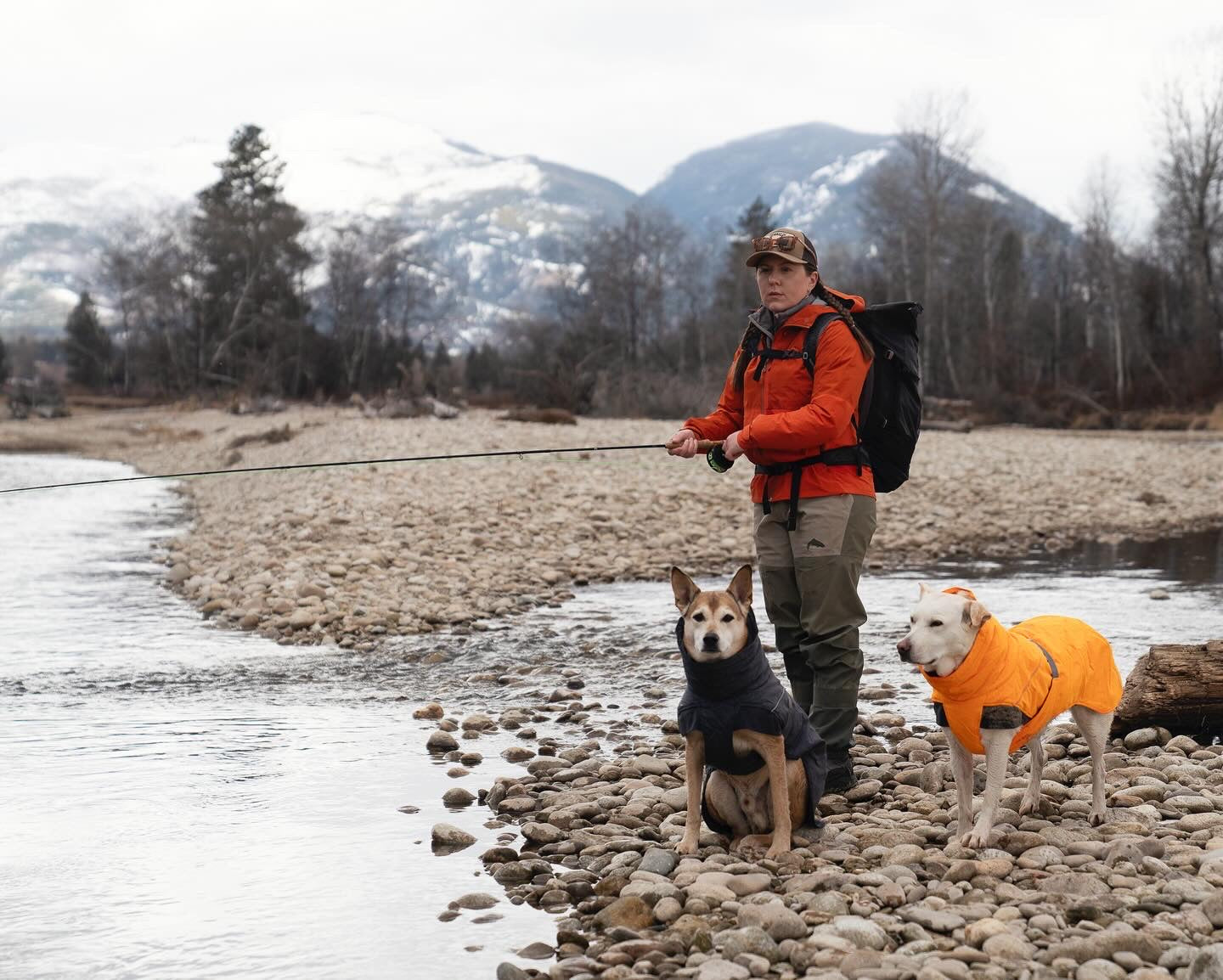 Last weekend we planned to float in the raft but the windy forecast begged to differ. We decided to go for a long hike on the river instead. I was initially worried the dogs might get cold. We’d be too far from the car to quickly turn around this time. So, I packed their warmest Hurtta Expedition Parka dog jackets and we headed out for the day.