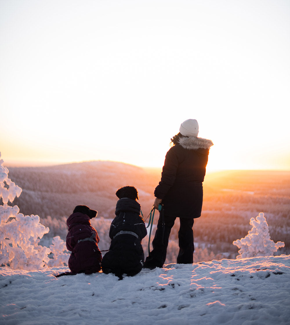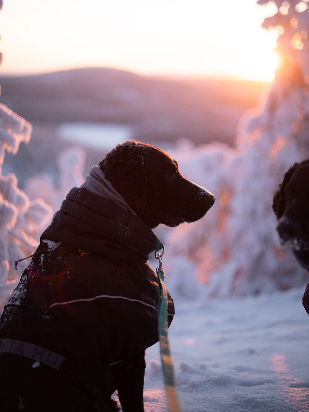 On this day, the temperature dropped to -26°C. It’s important to make sure that your four-legged friends stay warm as well. Fjell (his coat is still a bit oversized, but I think he will grow into it quickly) and Malte were wearing Hurtta Extreme Warmer III ECO dog winter jackets in colors Eggplant and Raven.