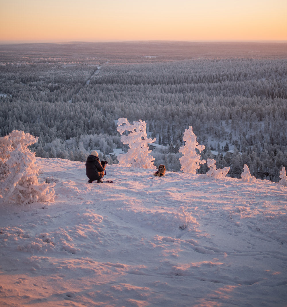 We took a short walk to the Juhannuskallio cliff to admire the scenic fell surroundings. When the weather is this cold, it is extra important to keep moving, but thanks to warm coats, we could pause for a while and just enjoy the moment.