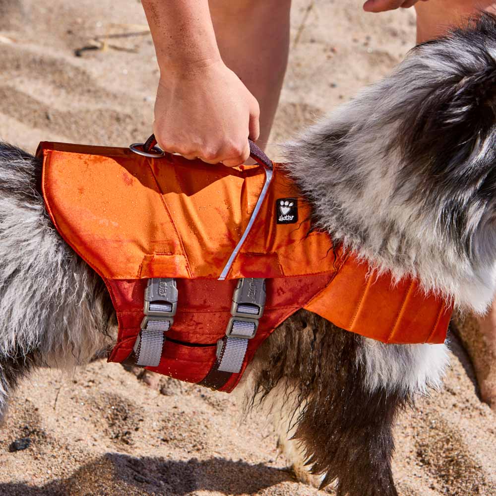 Key features include durable buckles, velcro chest straps for easy adjustments, a strong leash O-ring, safety reflectors and a robust handle for lifting your dog when needed. Perfect for dogs learning to swim or undergoing rehabilitation, it offers unmatched comfort and security—whether on the water or by the shore.