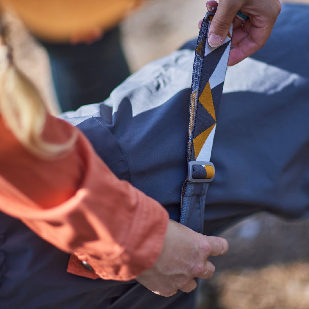 • Adjustable neckline, collar, belt and back length