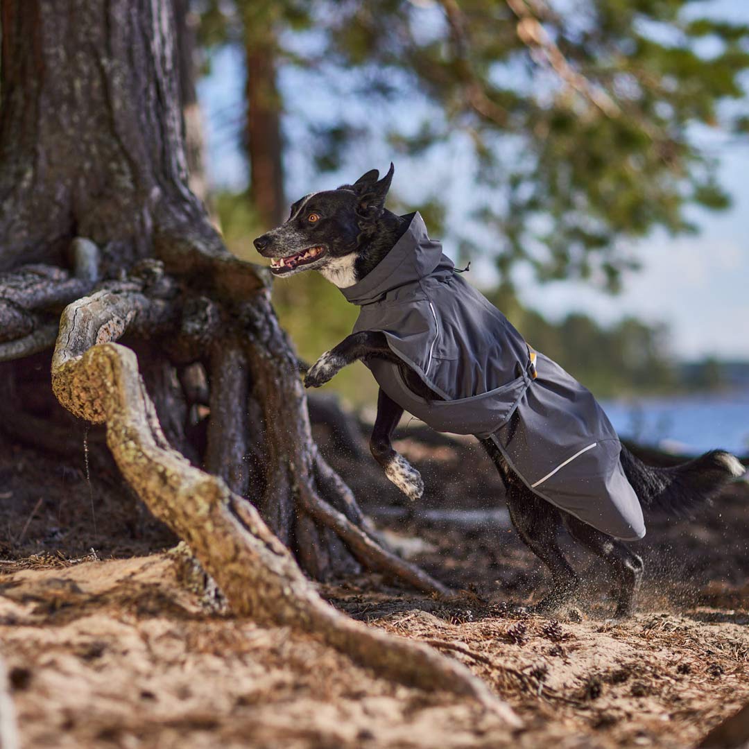 Playing in the rain and mud is great fun. The Mudventure Coat ECO dog jacket is great because it helps to keep some of the dirt out of your dog’s fur. And because it’s un-lined, it’s light and comfortable and ideal for travel, camping, or just for keeping in your backpack or purse. The raincoat is also practical in summer rain for dogs whose fur needs protection from windy, wet weather but no additional warming.