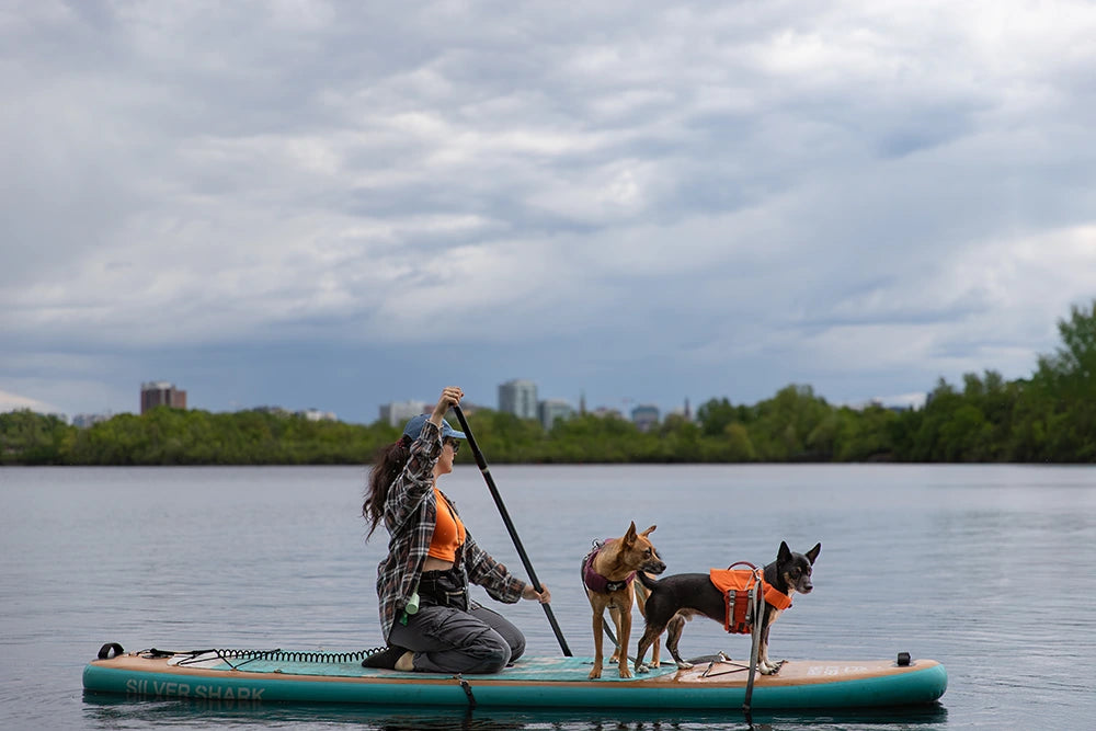 I am so happy we have the Life Saviour Eco jackets for the dogs. Not only do they keep the dogs safe, but they're also fit in a way that they can't slip off so they don’t need to wear harnesses underneath. So happy the dogs can comfy while staying safe while we paddle.