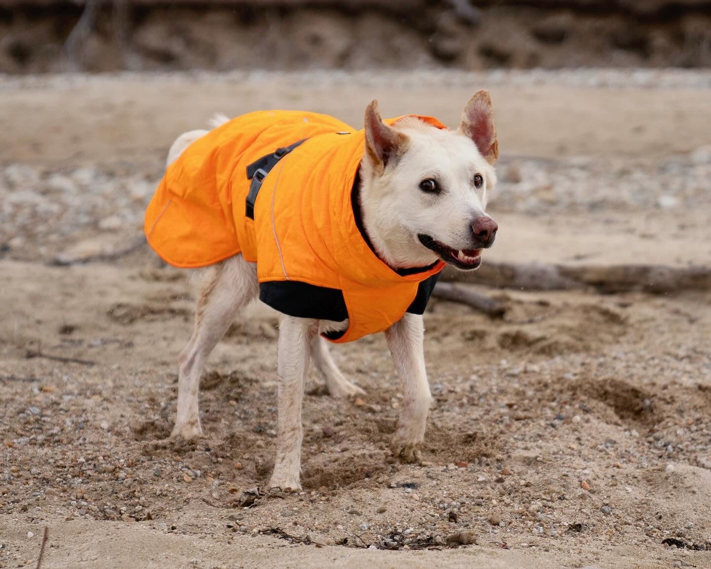 The protective model of the Hurtta Expedition Parka is designed to allow for extended range of motion when the dog is running and playing.