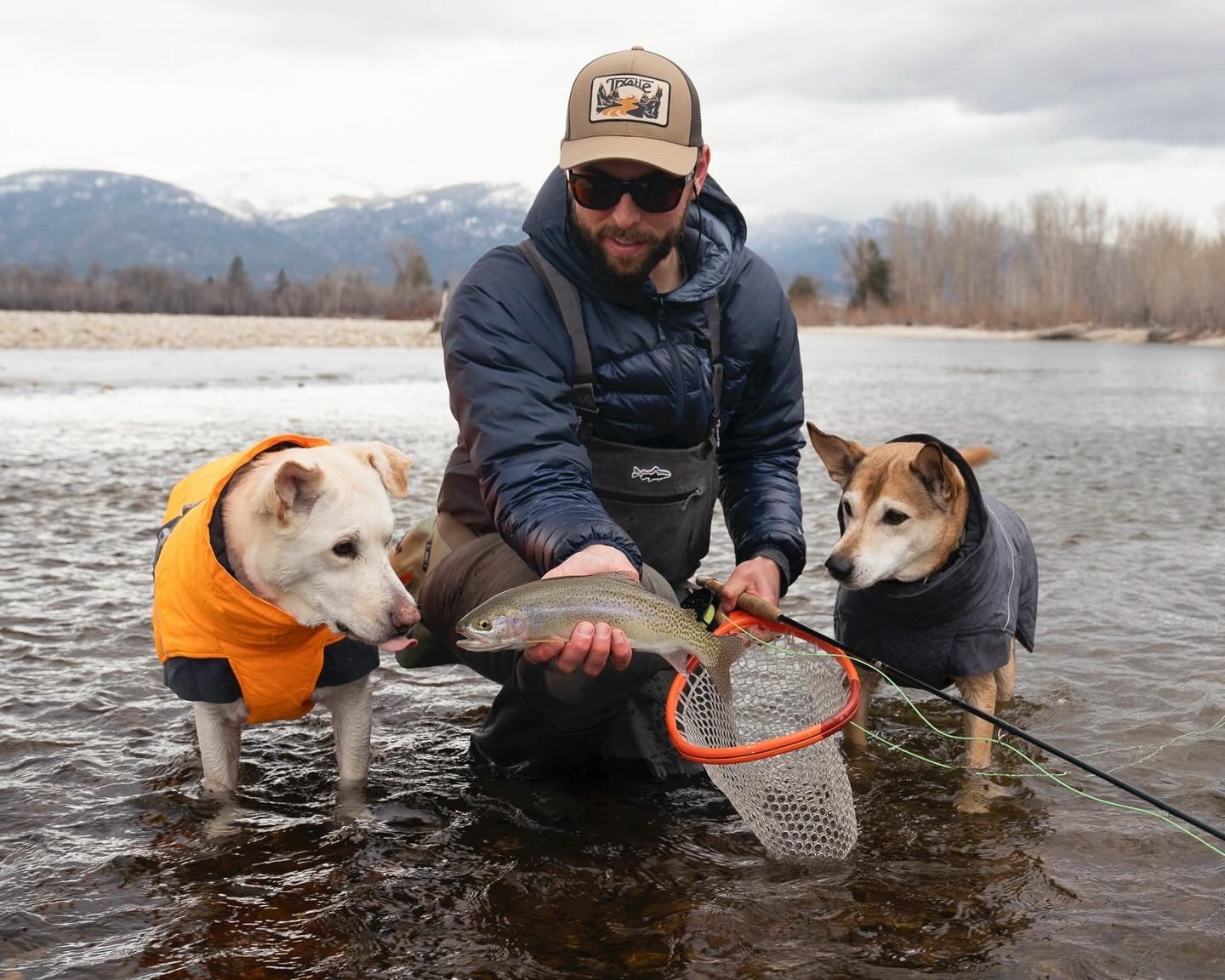 One thing I didn’t account for was the fact that these old pups would stay moving ALL day. They got the zoomies on every sand patch, pulled dozens of sticks out of the river, Lennie hopped through tall grass searching for critters, and of course, Teddy looked for fish. He was so excited that he even made his signature fish face. 😬 They had the BEST time and never showed any sign of being cold.