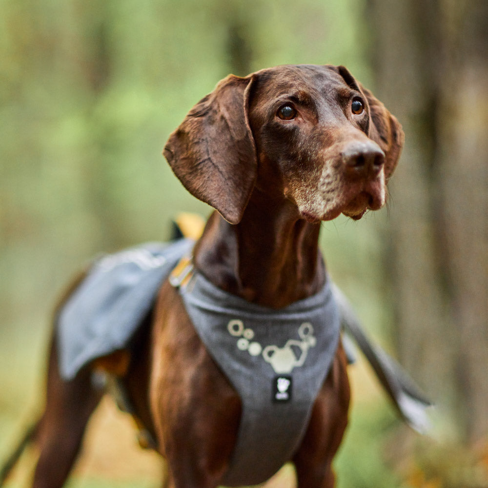 Structured like a harness, the pockets are perfect for essentials like food, treats, poop bags, and even a water bottle or small towel.