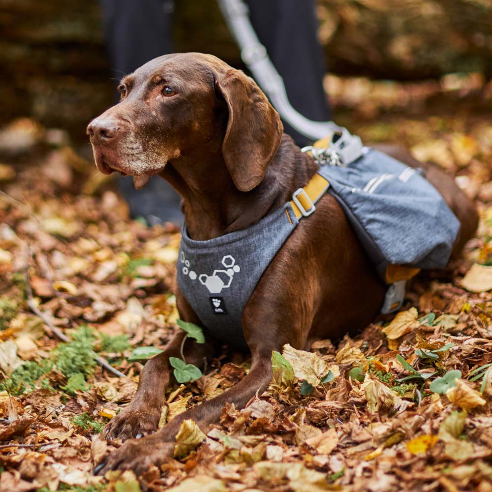 This backpack leaves your hands free, letting you run and explore more easily. Remember, though; never exceed a load of more than 10% of your dog's weight, distributed evenly between both pockets.