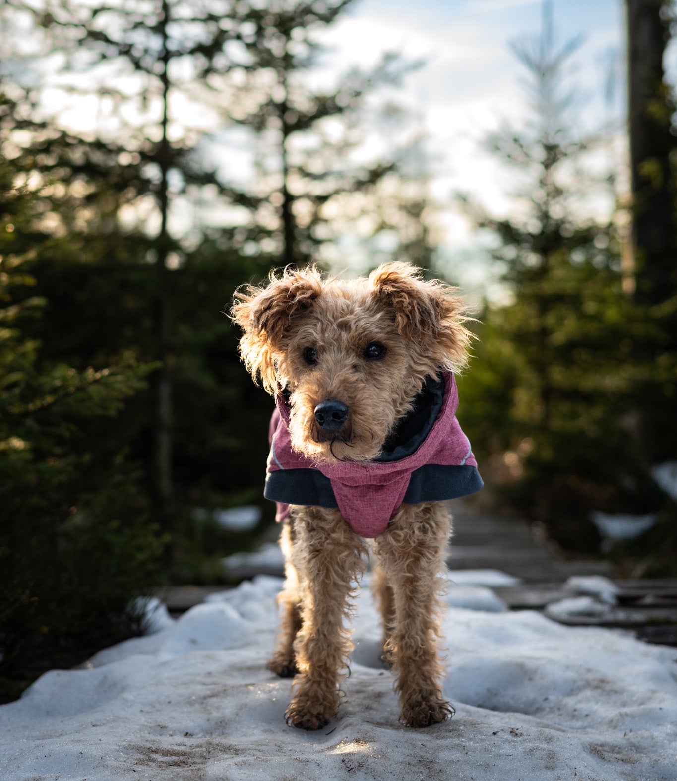 Lotta also loves being outside but definitely isn´t as keen on dog clothes, but actually quite picky. She needs a thick coat due to her old age, whenever it's super cold or we´re out on a hike.
