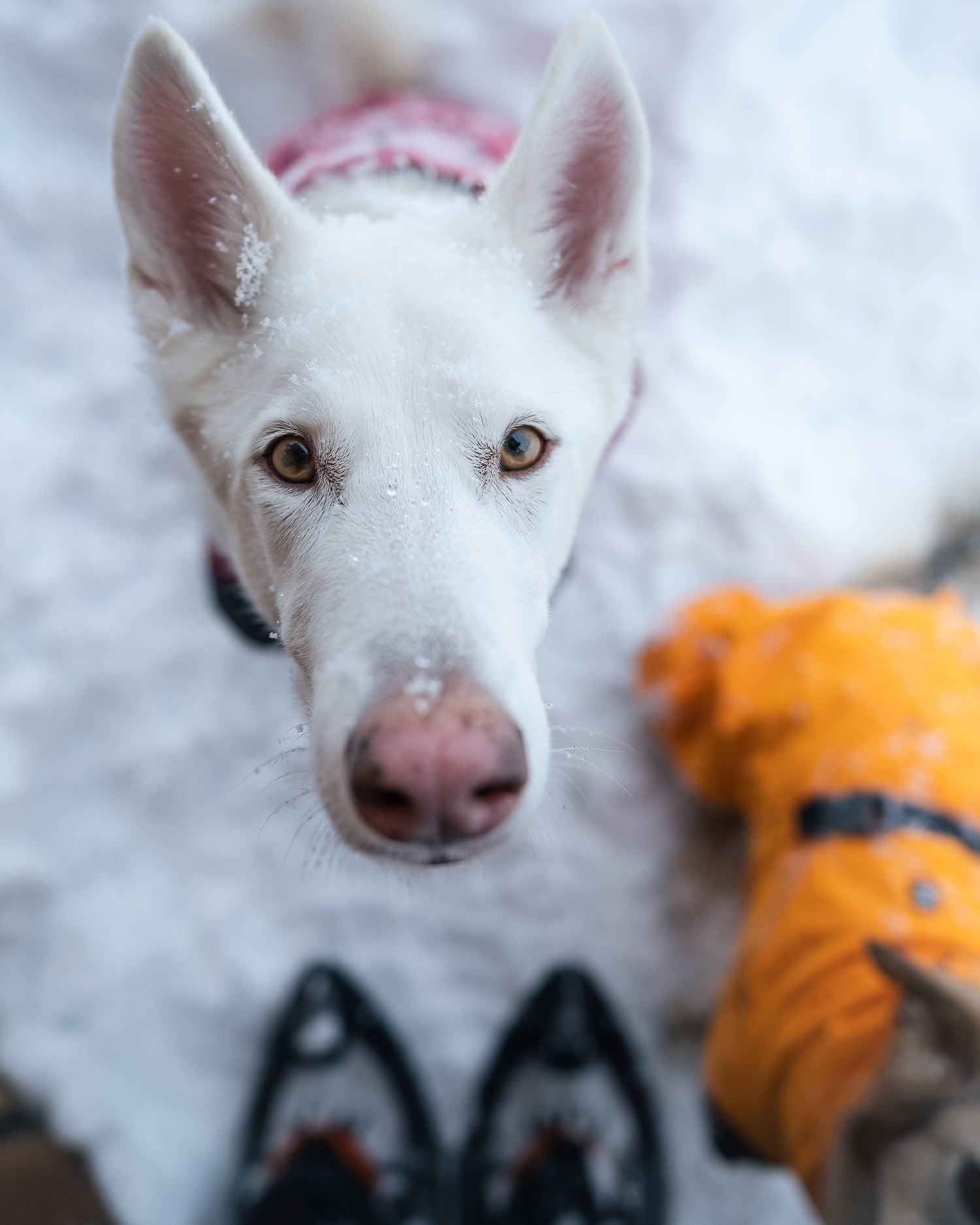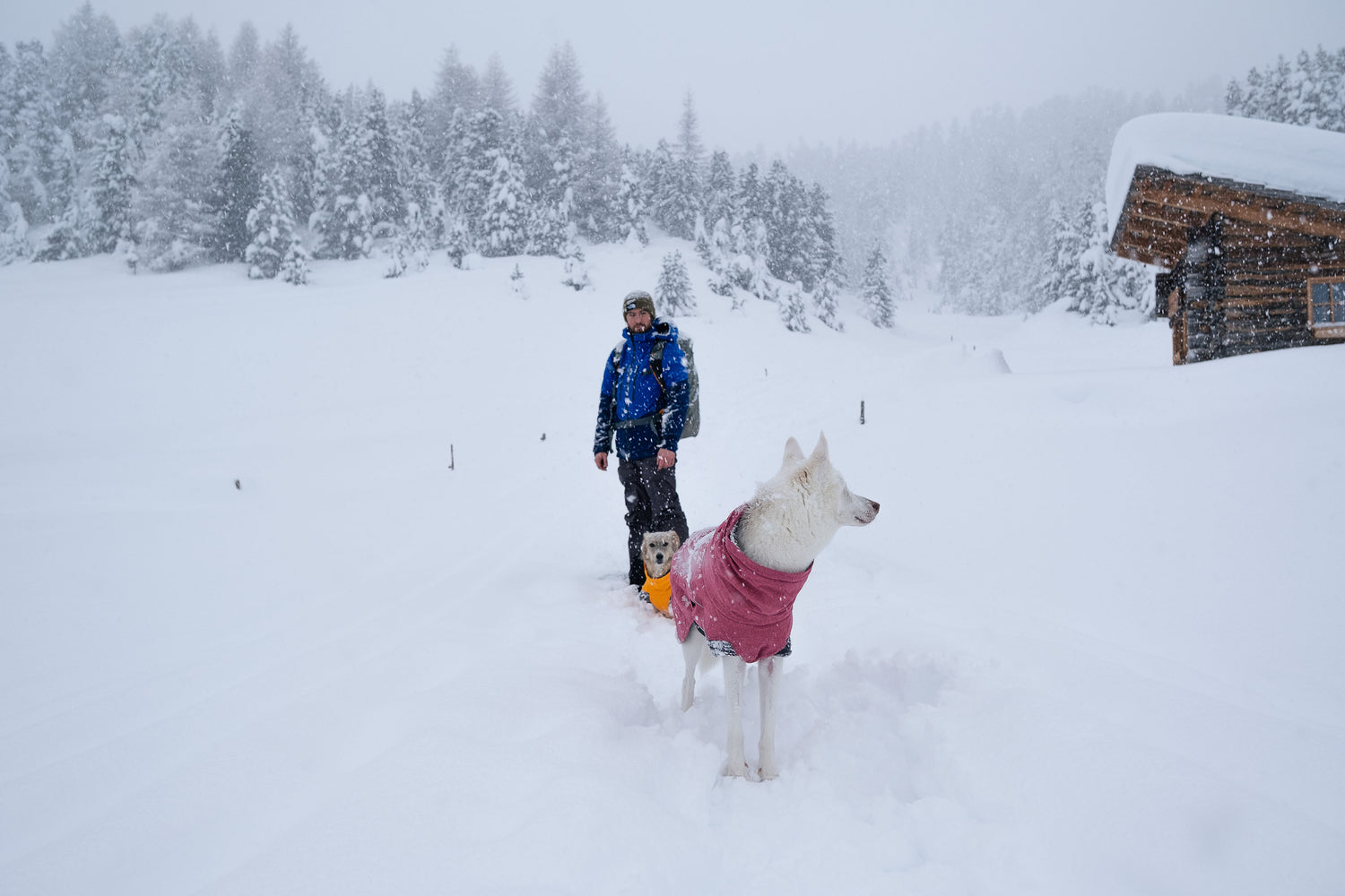 And for our dogs, we always pack the dog winter clothes Warming Midlayer and Expedition Parka from Hurtta in our backpacks, as well as protective booties 🐾