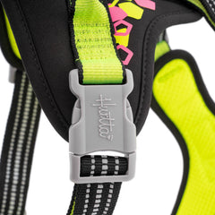 The updated Weekend Warrior Neon Harness is bright, colorful, fun, and designed to keep your doggy safe. It features extensive reflective surfaces, including a large, vibrant two-color reflective print and special 3M reflective stripes on the straps to make sure your dog is highly visible in even the lowest-light conditions.