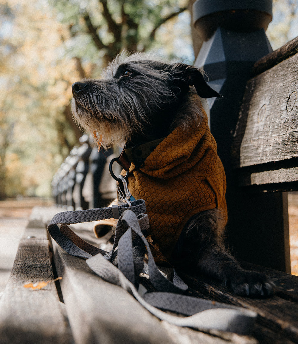 With the change of weather comes also a change of temperature, and there is no other outfit we love during the transitional Fall months than the Hurtta Warming Midlayer Eco Dog Jacket. We especially love the desert color, which blends perfectly with the changing leaves.