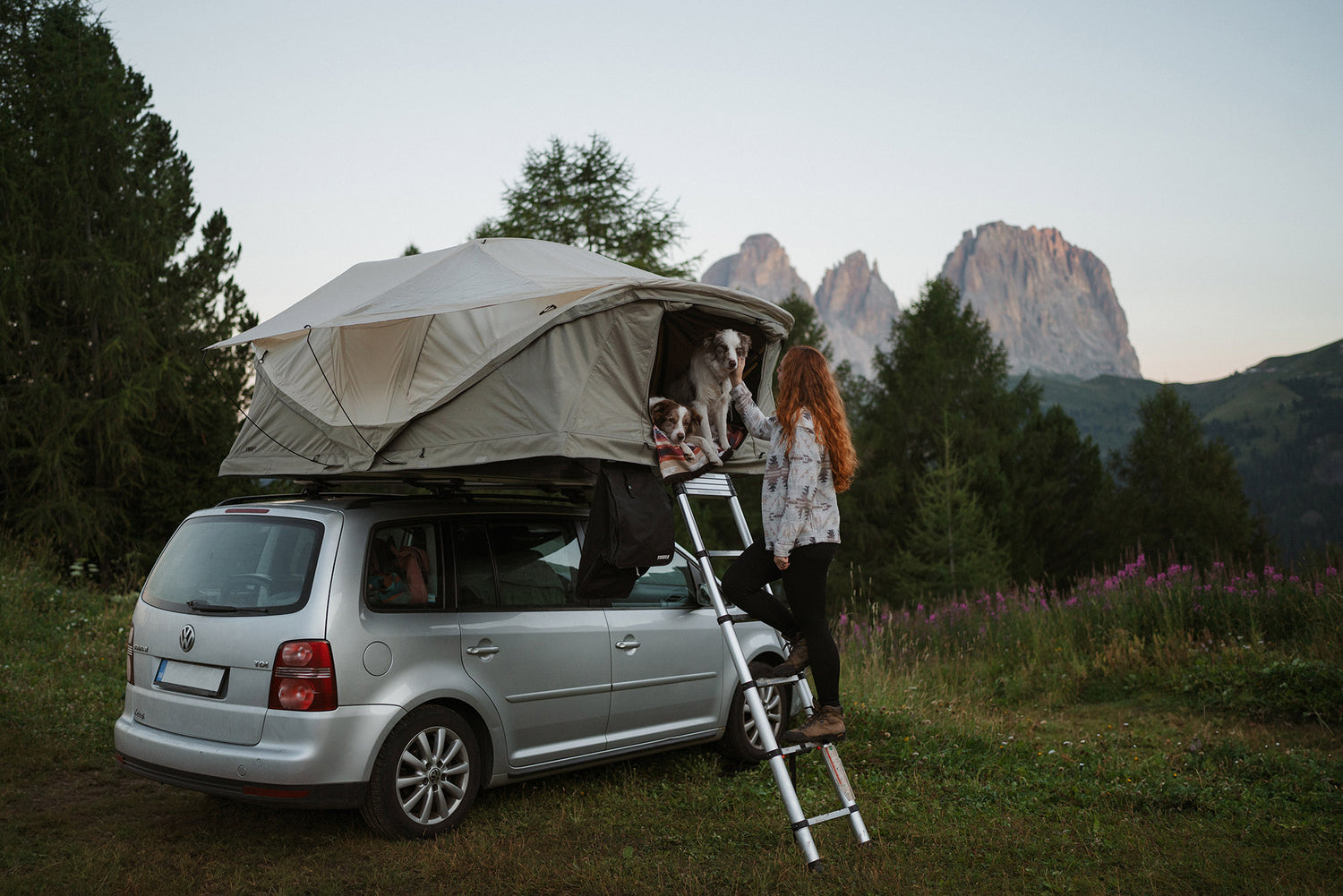 We packed the dog raincoats for our road trip to the Dolomites, and they really proved their worth during those chilly mornings and late evenings when we returned from hikes. Most of the time, we used them around our camping spots. It was essential to keep the dogs dry since they sleep with us in the rooftop tent, and the last thing we wanted was a wet, muddy tent!