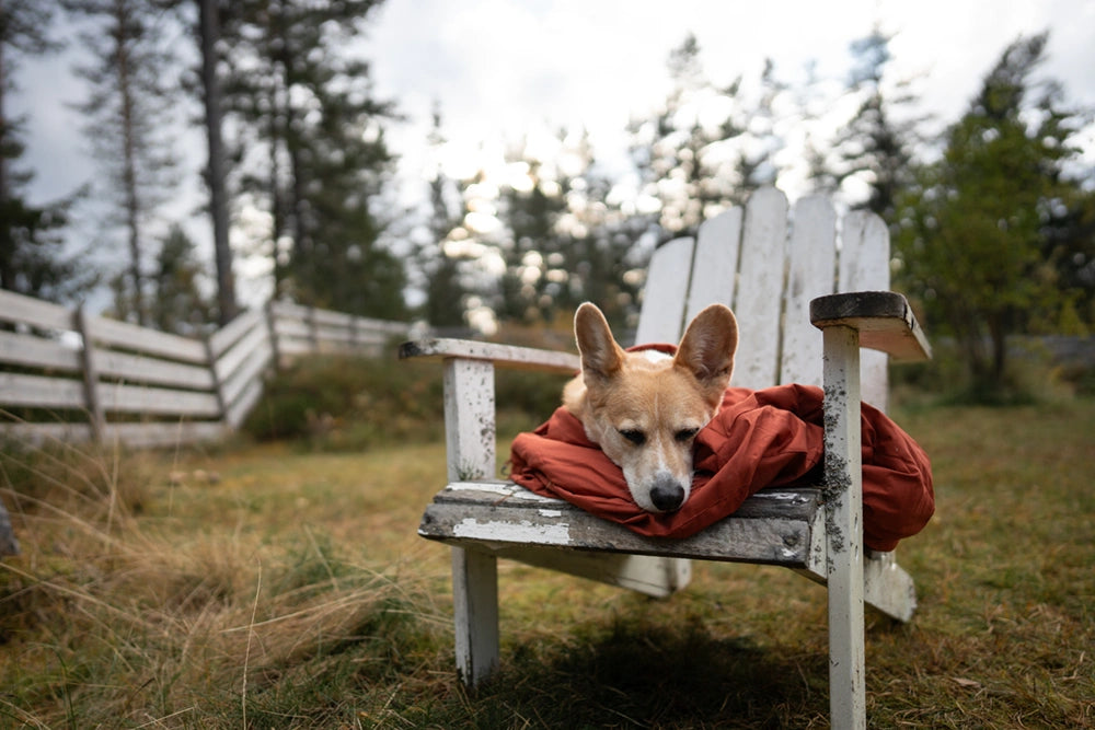 Splinter is a small corgi from around 12,5kg and Hurtta Sleepover Sleeping bag size M in color cinnamon fits him perfectly!