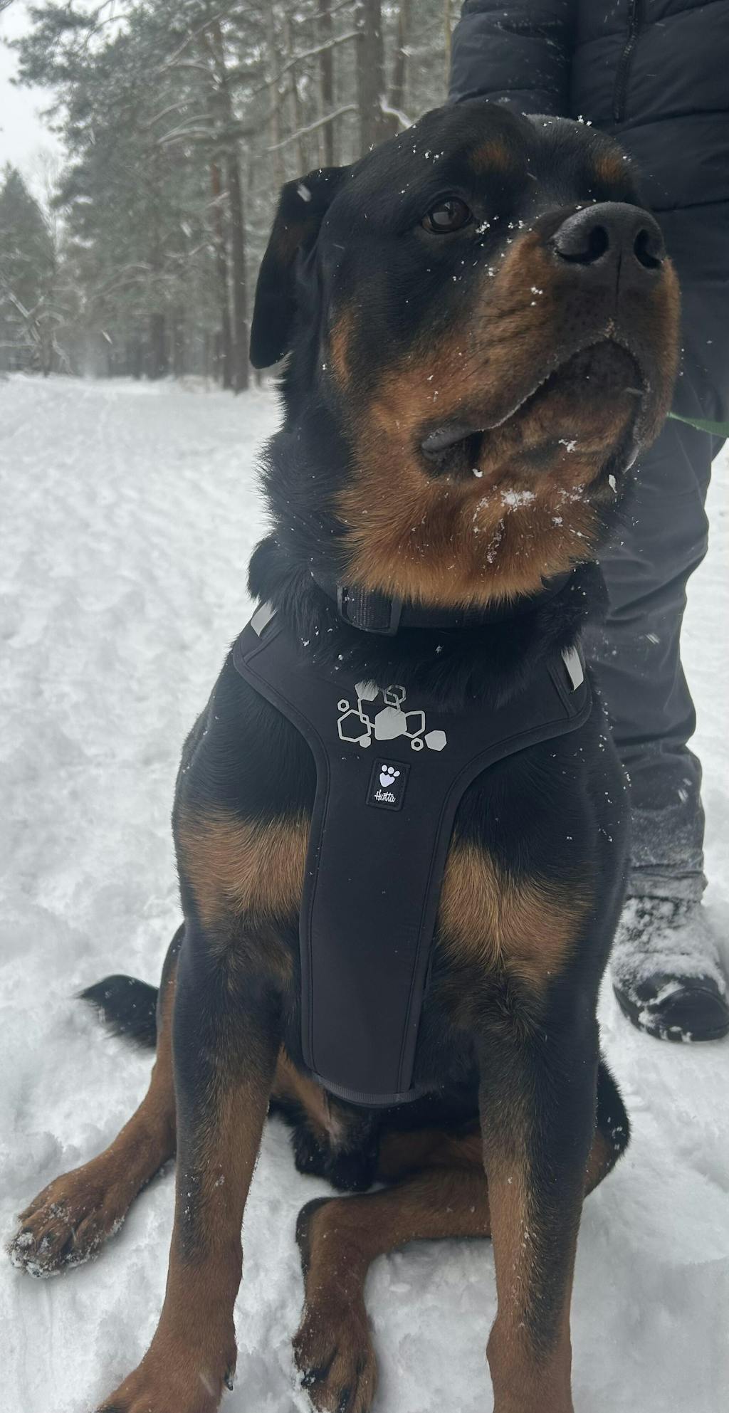 "I love how easy it is to adjust, so it can be worn over a midlayer, and how any force on the harness is distributed evenly over the large surface across the dog’s chest and back."
