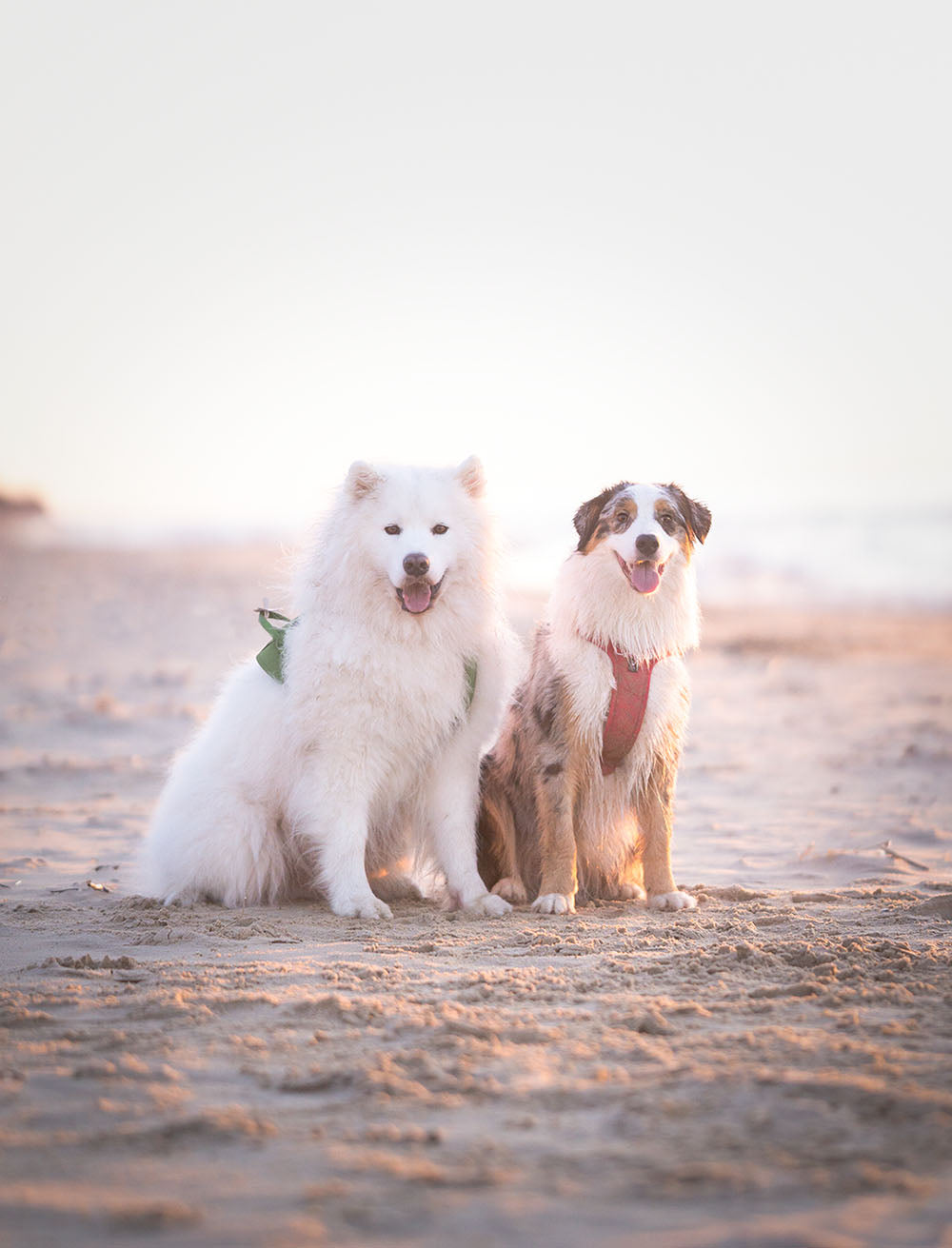 Hurtta adventurer Sammy 21kg Samoyed and Nia 15kg Australian Shepherd.