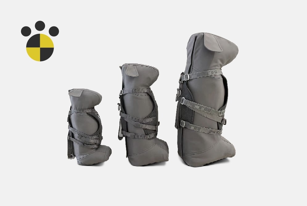 In developing crash test dummies, we partnered with an English company specializing in training dummies for rescue operations. By modifying their dog dummy model, we created a suitable dummy for crash-testing our harnesses.