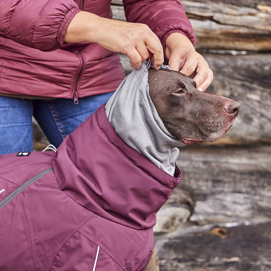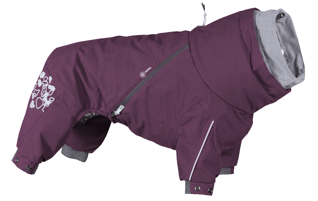The Extreme Overall has a foil liner, which reflects body heat back towards the body and activates the blood circulation, as well as a high-quality, soft, water and windproof surface material. It has a high hood which protects the dog from wind and snow. This overall is highly adjustable for dogs of various breeds and with different body types. Its unique, adjustable chest circumference maximizes its suitability for every dog and guarantees freedom of movement. The back-length adjuster has been inconspicuously placed on the inside of the overall.
