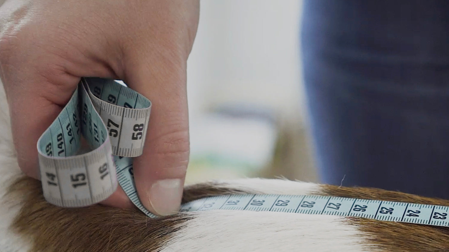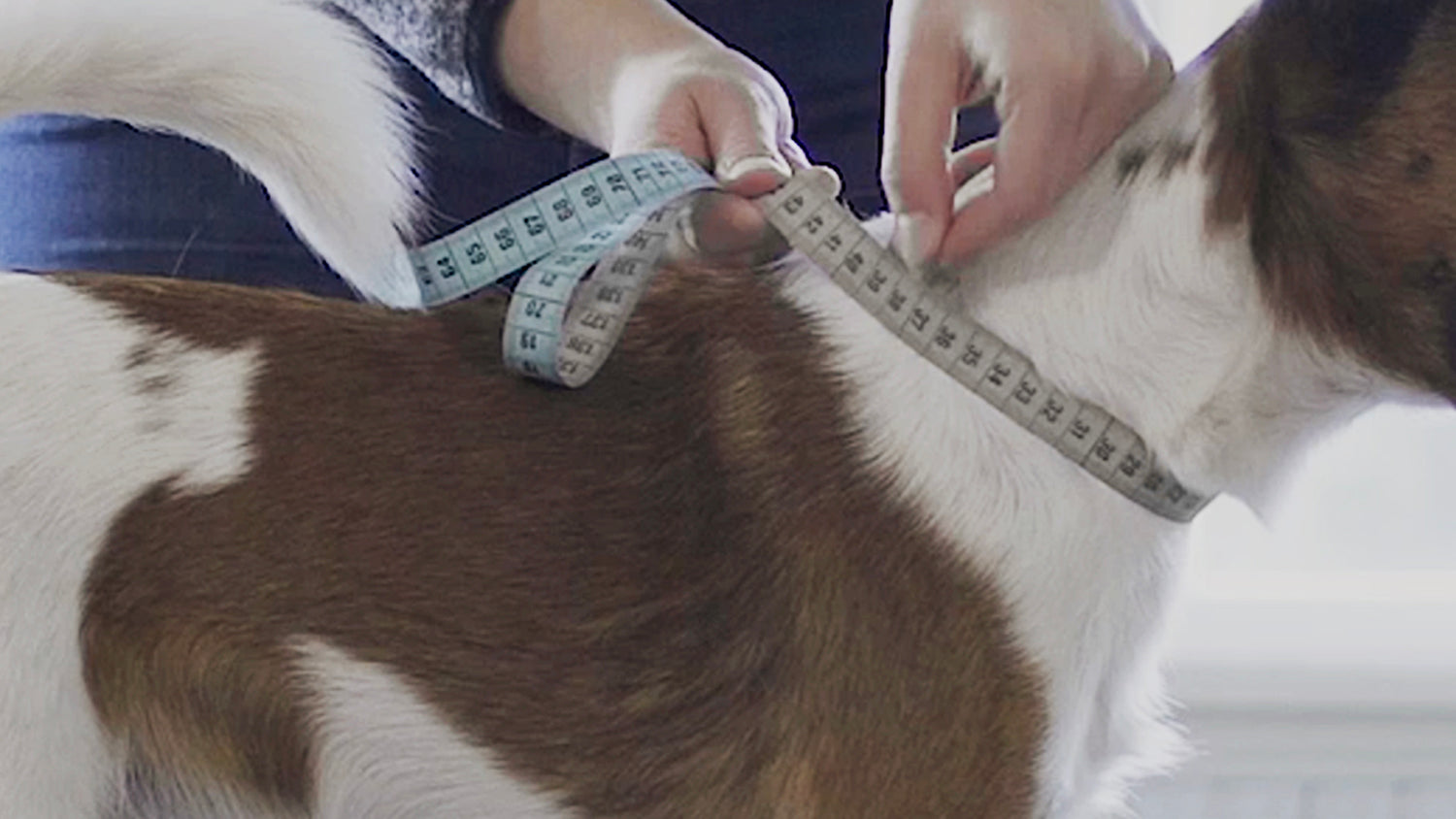 - När du mäter din hund är det superviktigt att den förblir lugn och stilla. Det kan verkligen hjälpa att be en vän om stöd som ger hunden godbitar för att hålla den avslappnad. På så sätt kan du noggrant kontrollera de rätta måtten. Om du till exempel mäter rygglängden för lång kan kappan eller overallen bli för stor och lös. Om mätningen å sin sida är för kort blir plagget för tajt, vilket begränsar rörelsen och ger mindre skydd.