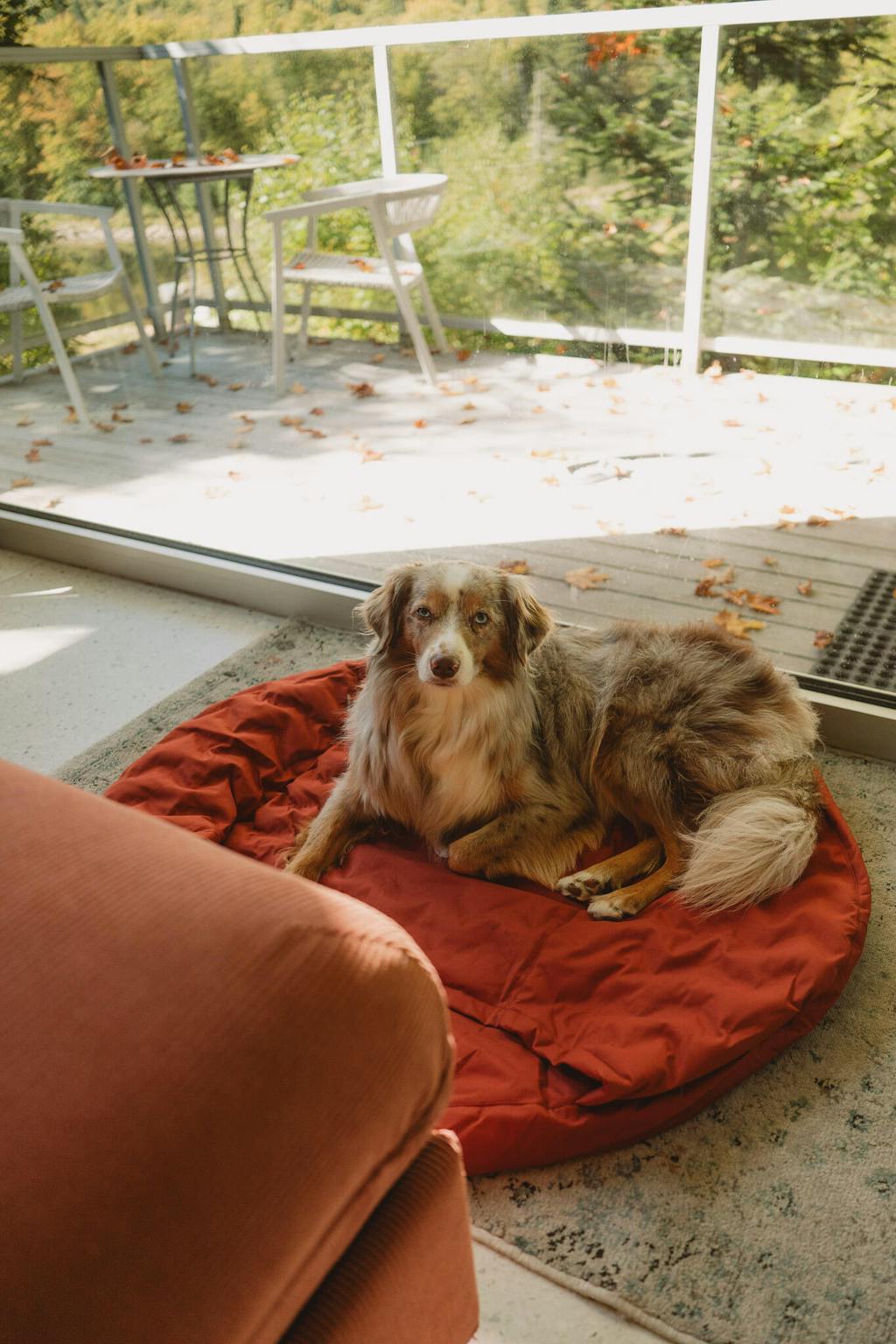- Sovsäckens runda design speglar den naturliga formen hos en hund som ligger hopkurad i en mysig sömn.